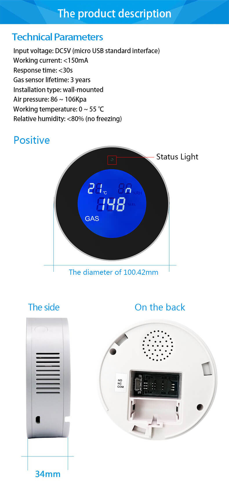 Advantage point: 1,High-sensitivity high-stability long-life gas sensor 2,Response recovery is fast response time30 seconds 3,Large screen LCD displays gas concentration and device status in real time
